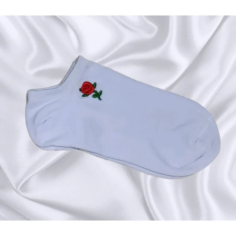 جوراب مچی زنانه سفید گلدوزی