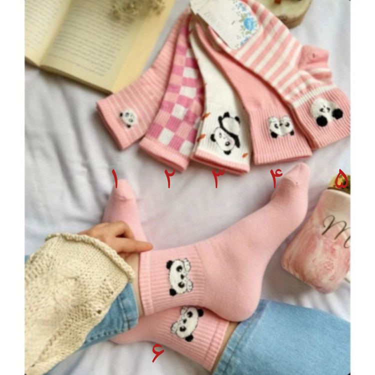 جوراب زنانه نیم ساق پاندا نخ پنبه